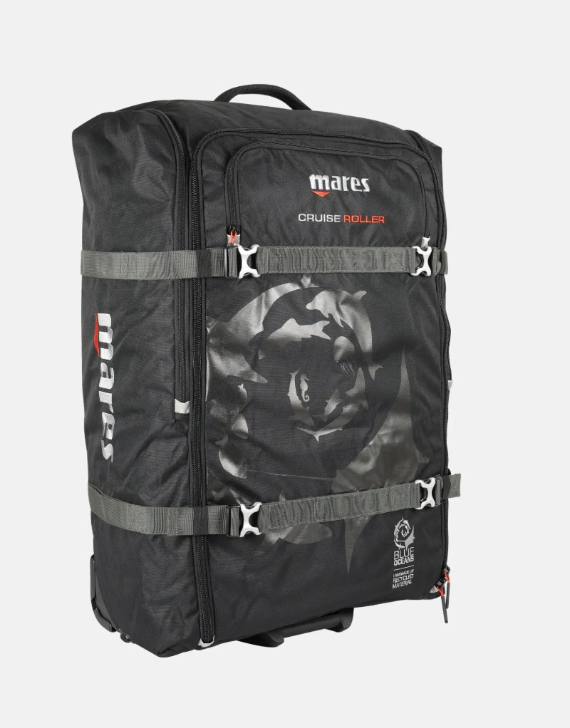 Roller Cruise è uno zaino subacqueo pieghevole e con le ruote. Super leggero e spazioso, con 2 tasche laterali integrate per le pinne. iSi ripiega in meno di un minuto e diventa una piccola borsa a mano.